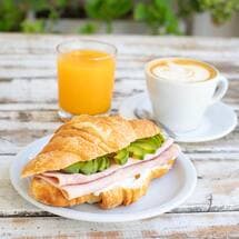 Croissant mediterraneo (tomates asados, regiano, olivas griegas y pesto de albahaca)