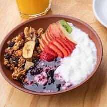 - Granola artesanal con frutas, yogur natural y compota de frutos rojos o porcion de torta