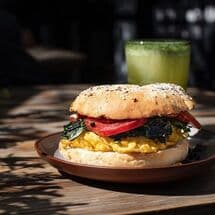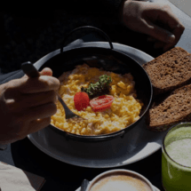 - Huevos (revueltos, fritos ó poché) sobre tostada de pan de masa madre o 100% integral orgánico