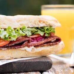 Pollo grillado, panceta crocante, queso, tomate asados, lechuga y barbacoa