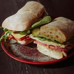 Jamon crudo, queso pategras, tomate, rucula y manteca